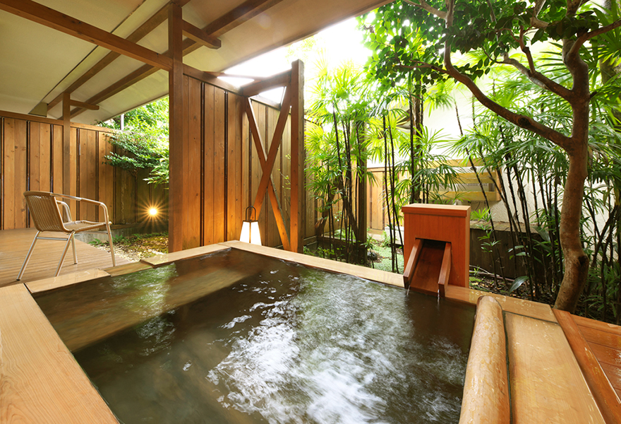 さらに、全室に源泉100%かけ流しの露天風呂を完備。