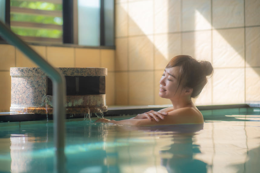 男女ともに半露天風呂と内湯があり、自然を感じながらゆったりと温泉を楽しめるのもポイント。