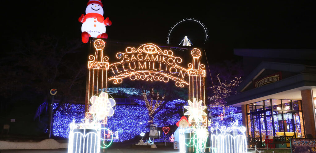 旧プレジャーフォレスト時代から続く「さがみ湖イルミリオン」は、関東最大級600万球の電飾が圧倒的なスケールで迫る人気スポットです。