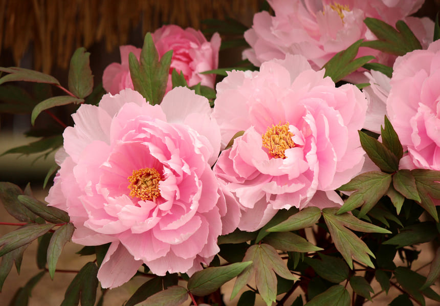 初詣の賑わいはもちろんですが、1月から2月にかけて見頃を迎える「神苑ぼたん庭園」の冬牡丹は見逃せません。