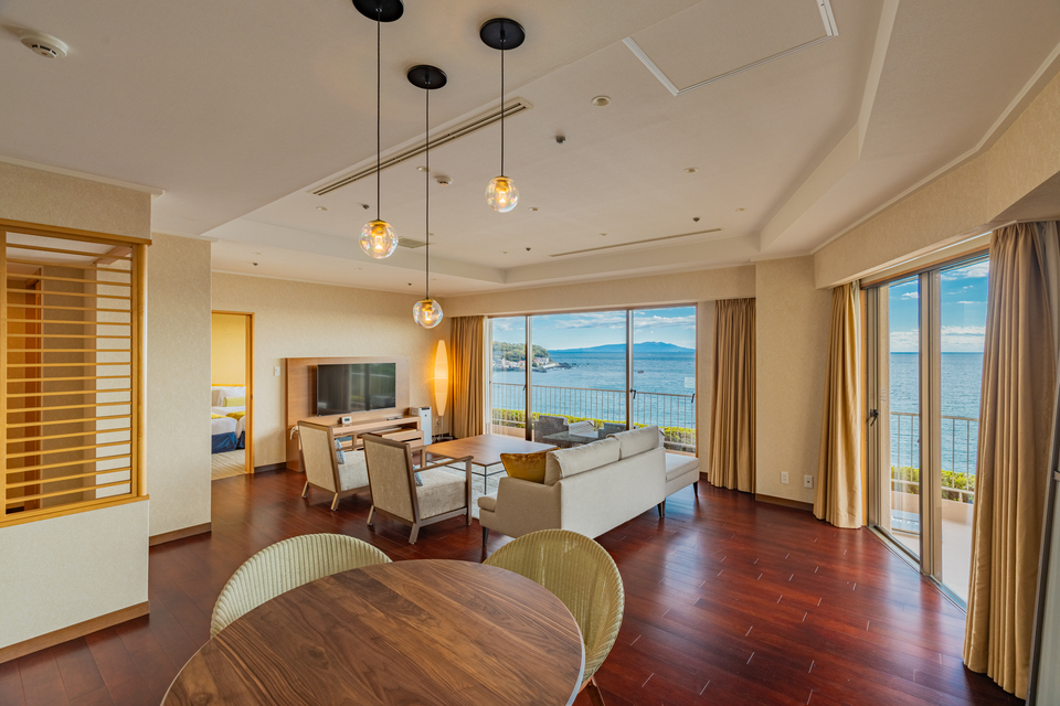 全室オーシャンビューとバルコニー付きの客室が最大の魅力で、今井浜海岸の美しい景色を独り占めできます。