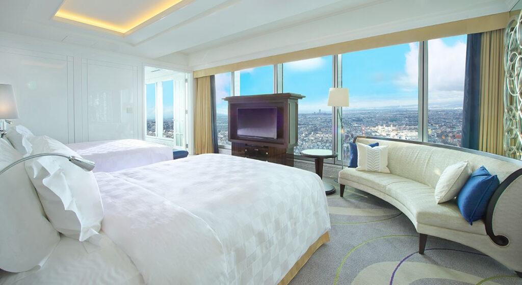 「大阪マリオット都ホテル」は、日本屈指の高層ビル「あべのハルカス」の上層階(38階〜55階)に位置する、ラグジュアリーホテルです。