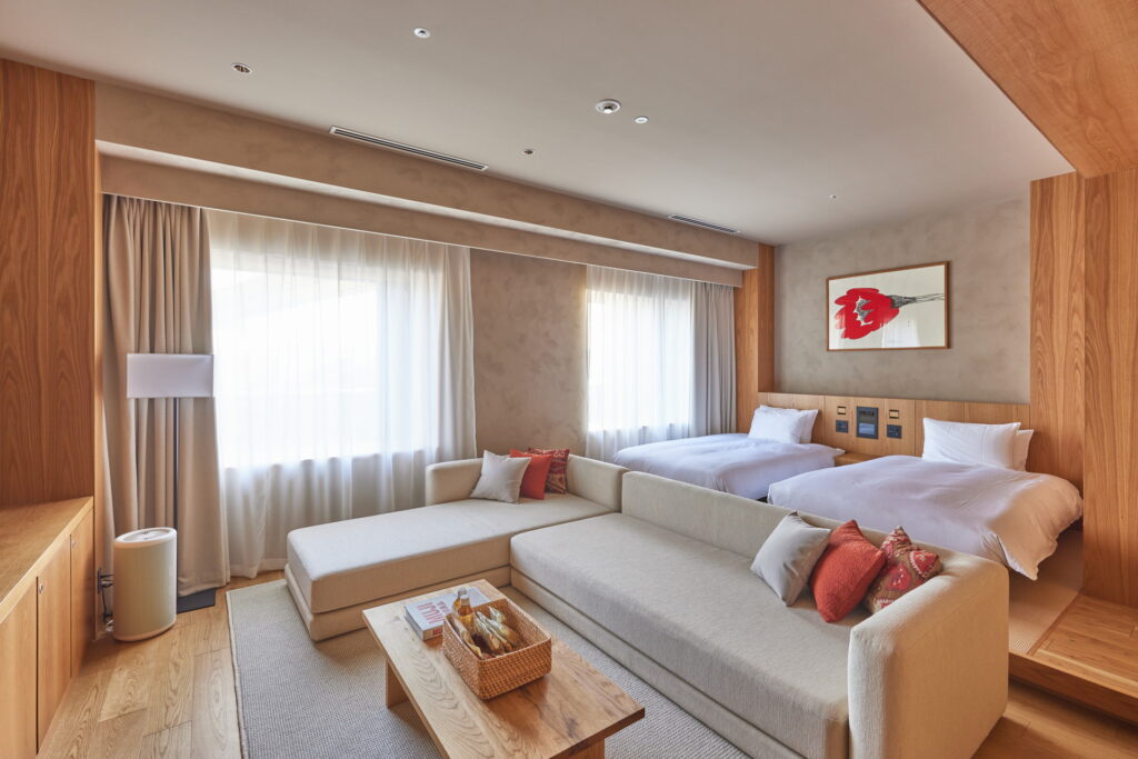 客室は、シンプルでありながらも洗練された空間となっており、特に無印良品が手掛けたMUJI roomが人気です。