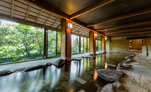 毎分550リットルという豊富な湯量で、大浴場や露天風呂はもちろん、全客室に付いたお風呂でも新鮮なお湯を贅沢に楽しめます。